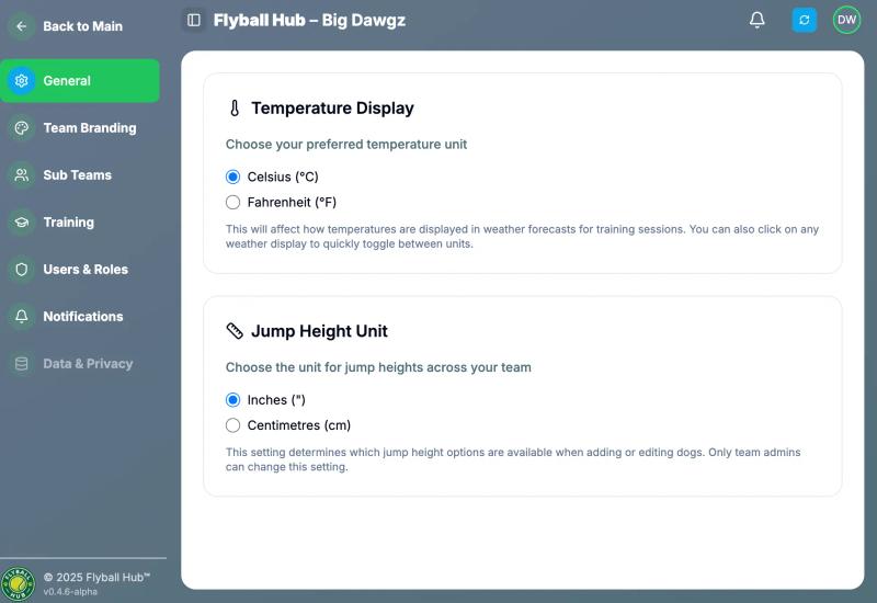 Make Flyball Hub your own by setting your team's colours and adding your logo, important files and links. More customisation to come!