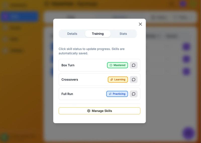 You can add skill badges to a dog and track their progress via threaded comments history. This is an evolving feature, as we get more user feedback this should get better and better.